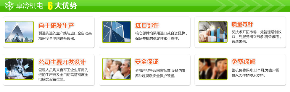 • 深圳市卓冷機(jī)電設(shè)備有限公司是集研發(fā)、設(shè)計(jì)、制造、銷(xiāo)售,安裝為一體的綜合性公司,專(zhuān)業(yè)生產(chǎn)冷凍和空調(diào)設(shè)備及安裝。經(jīng)過(guò)十三年的發(fā)展,公司從無(wú)到有,從小到大,已經(jīng)具備雄厚的制冷技術(shù)、并擁有現(xiàn)代化的生產(chǎn)線(xiàn)和檢測(cè)設(shè)備,以生產(chǎn)高質(zhì)量的冷凍空調(diào)設(shè)備和完善的售后服務(wù)贏(yíng)得了國(guó)內(nèi)廣大客戶(hù)和經(jīng)銷(xiāo)商的信賴(lài)。